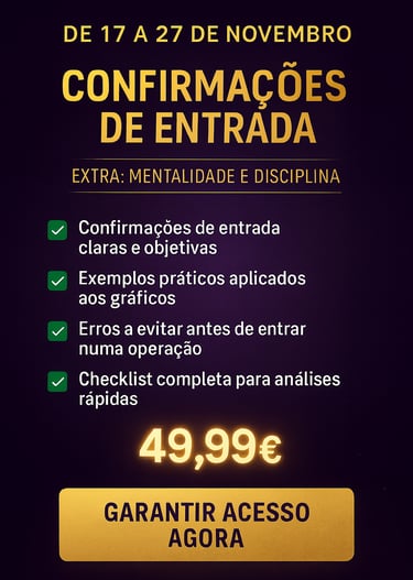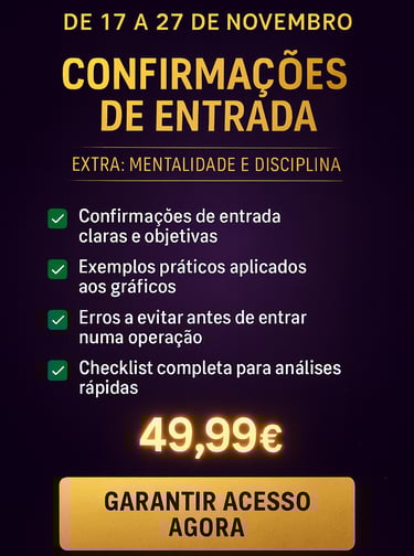 As Confirmações de Entrada são tudo o que precisas para saber exatamente quando entrar e quando ficar fora do mercado — sem dúvidas, sem medo e sem overtrading.
